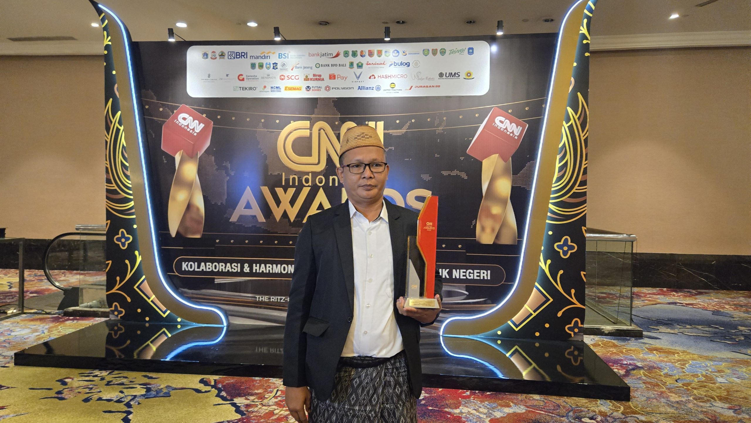 Jakarta — CEO Bawang Mas Grup, H. Khairul Umam, atau yang akrab disapa Haji Her, menerima penghargaan Outstanding Contribution to Transforming Lives through Philanthropy and Grassroots Empowerment dalam ajang CNN Indonesia Awards 2025 di Grand Ballroom The Ritz-Carlton Mega Kuningan, Jakarta, Jumat (31/10/2025).