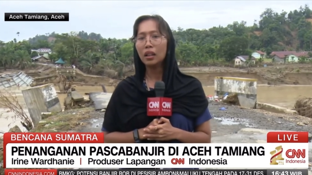 Peristiwa tersebut terjadi dalam siaran langsung pada Rabu (17/12/2025), setelah bencana banjir dan longsor melanda sejumlah wilayah di Aceh selama lebih dari sepekan. Dalam laporan itu, reporter CNN Indonesia Irine Wardhanie tampak tak kuasa menahan emosi saat menggambarkan kondisi warga terdampak yang dinilai belum mengalami perbaikan signifikan.