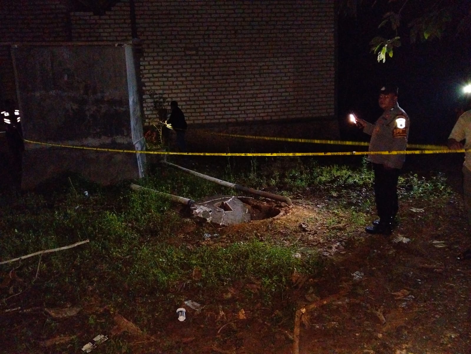 Usai kejadian, aparat dari Polsek Palengaan bersama Unit Inafis Satreskrim Polres Pamekasan melakukan olah tempat kejadian perkara (TKP). Polisi mengamankan sejumlah barang bukti, di antaranya dua botol bekas wadah bensin, serpihan pipa paralon, serta pecahan beton penutup septic tank.
